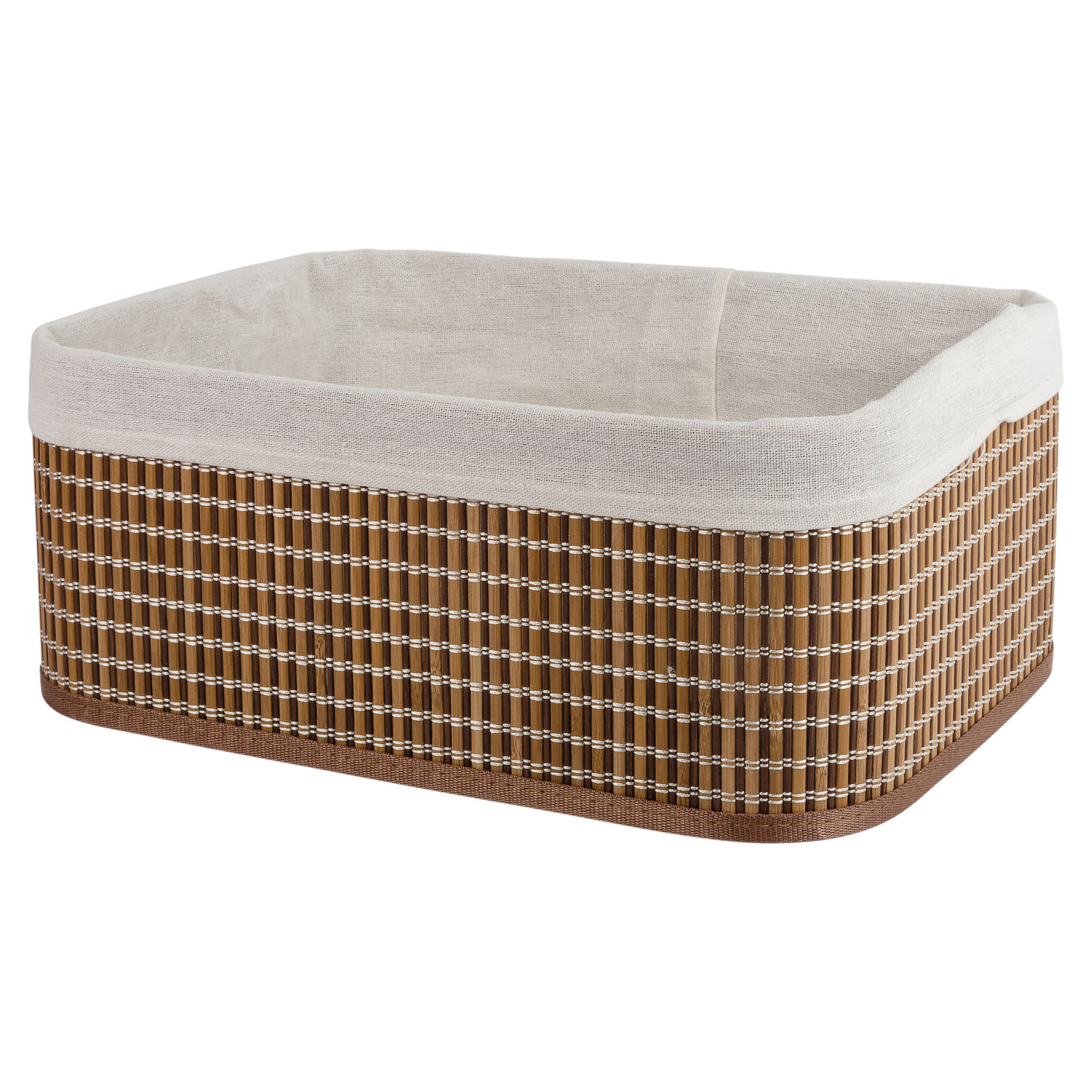 Стильная корзина для хранения Selecta 40x30x16 см из бамбука с тканевой вставкой для организации хранения вещей. Изготовлена из экологически безопасных материалов.
