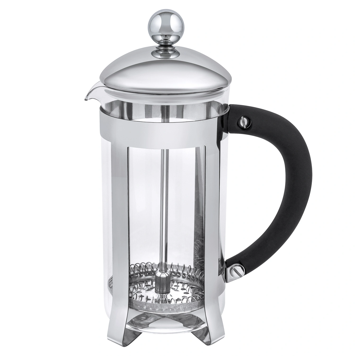 Корпус френч-пресса и поршень изготовлены из высококачественной нержавеющей стали, которая не окисляется и не меняет вкус напитка. Сетчатый фильтр обеспечивает высокое качество фильтрации напитка, а удобный носик дает возможность наливать чай без проливания его на стол. Эргономичная ручка обеспечивает комфортное использование изделия.